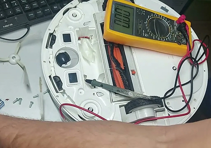 Если пылесос не заряжается на базе, при этом контакты и подключение в порядке, проверьте сам блок питания. Он может выйти из строя из-за скачков напряжения или внутреннего короткого замыкания.