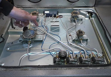 Если газ идёт, но искры нет, можно попробовать зажечь конфорку вручную и проверить подачу. При отсутствии газа или искры при целых батарейках следует обращаться к мастеру.